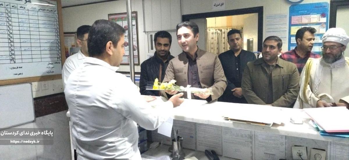 به گزارش پایگاه خبری ندای کوردستان؛ در این دیدار امام جمعه شهرستان به همراه فرماندار شهرستان، فرماندهی سپاه بسیج ناحیه جوانرود و رئیس بیمارستان با حضور در بیمارستان حضرت رسول (ص) جوانرود با اهدای شاخه گل از زحمات پرستاران شاغل در این بیمارستان تقدیر نمودند.