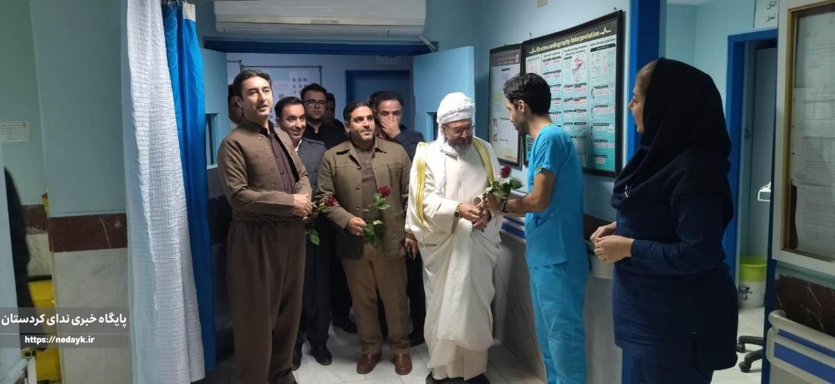 به گزارش پایگاه خبری ندای کوردستان؛ در این دیدار امام جمعه شهرستان به همراه فرماندار شهرستان، فرماندهی سپاه بسیج ناحیه جوانرود و رئیس بیمارستان با حضور در بیمارستان حضرت رسول (ص) جوانرود با اهدای شاخه گل از زحمات پرستاران شاغل در این بیمارستان تقدیر نمودند.