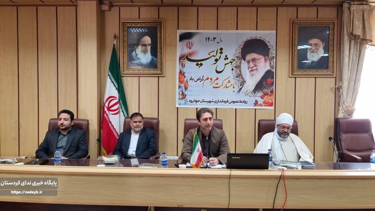 فرماندار جوانرود در ادامه با ارائه گزارشی از اقدامات انجام گرفته در شهرستان یادآور شد: بیش از پیش شاهد خدمات دولت و نظام در شهرستان هستیم که از جمله آن می توان به وارد مدار کردن پروژه چاه تم تم با اعتبار ۱۵ میلیارد تومان با توجه به مشکلاتی که در گذشته در حوزه آب شرب داشتیم،